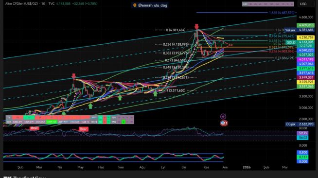 Grafiğin solunda uzun vade dipten tepeye attılan ters fibonaci düşüşün düzeltme sevileri ihtimali