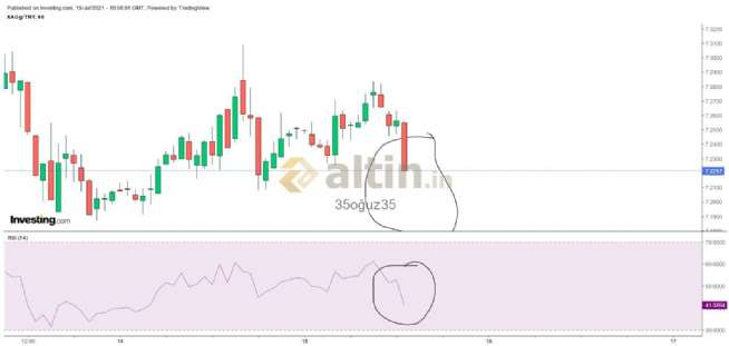 dolar tl de gerı cekılmeyıde sayarsak usd 8.5 veya 8.4 dıp beklentım var gumuste 1 ve 4saatlık yon asagı suan ıcın. gumuste dıp 6.9 veya 7 cıvarı denıyor ama bu sadce tahmın ytd