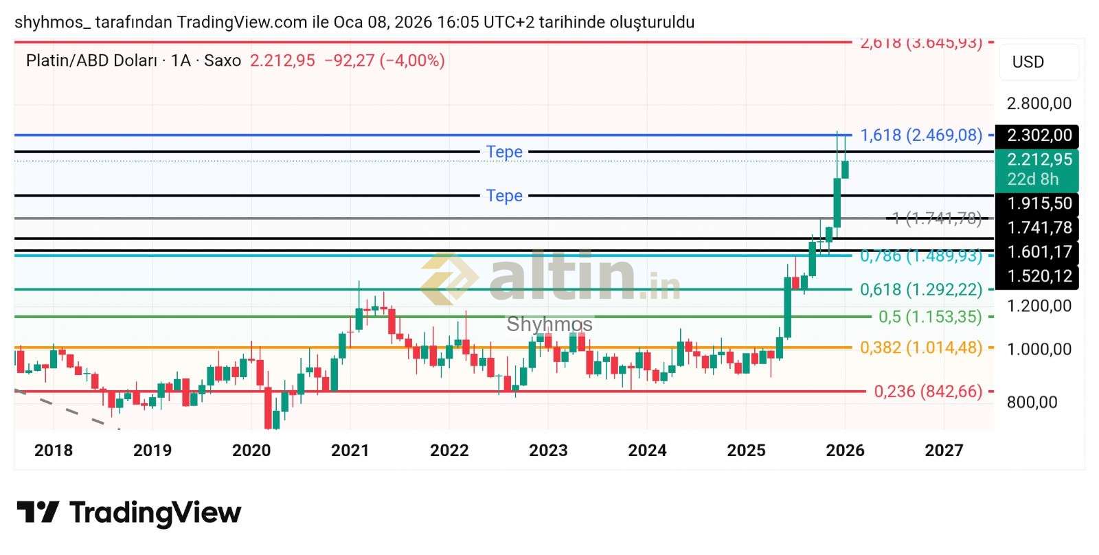 Hatta grafikte maalesef bir yeri gözden kaçırmışım ki dikkat edersen aylık bakışta ki o tepe yıl sonuna da denk geldi iki kere 1.618 seviyesinden red yemiş. Ben ise 1300 tepesine önem vermiştim tabi 2469 seviyesine kadar çıktı. İnşaallah altın oranın mana ve önemini anlamışsındır. Ama kesinlikle herseferinde tutar diyemeyiz. Çünkü biz yorumlarken bir sürü hata yapabiliyor verdiğim örnekte şahit.