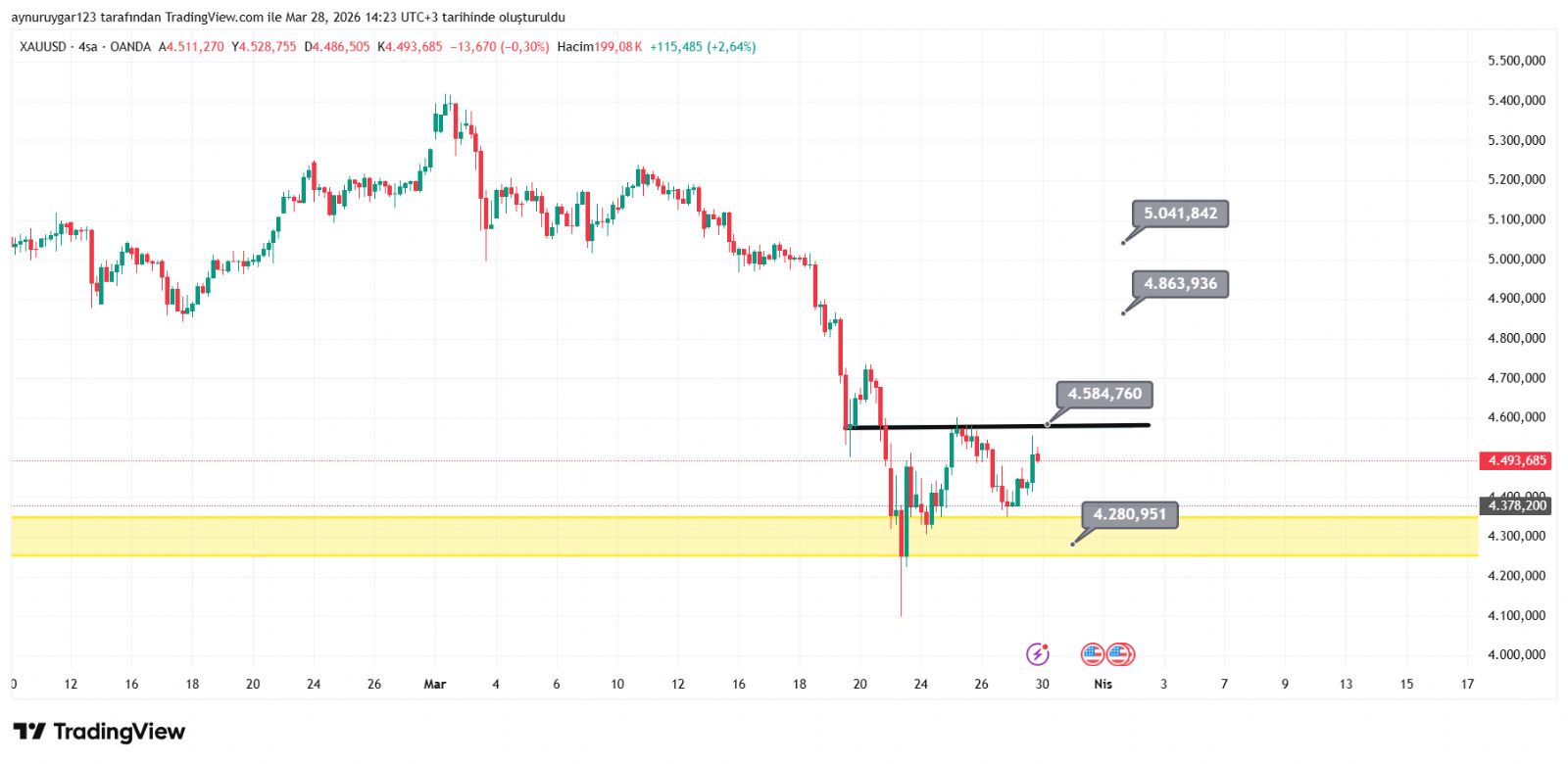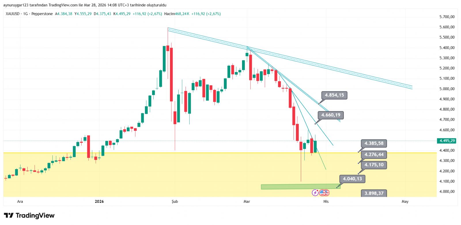 4500–4570 bölgesi trend belirleyici alan olduğu için