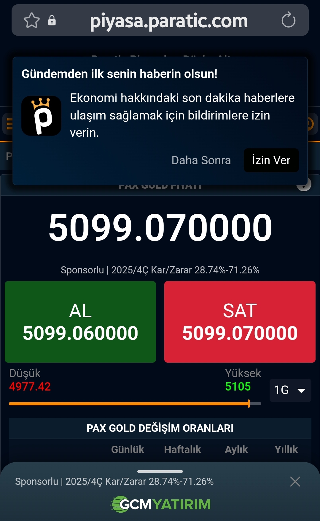 Açıklama: Al/Sat simülasyonu üyelik başlangıcında sistem tarafından verilen puanları kullanarak başarı sıralamanızı yükseltebileceğiniz uygulamadır. Gerçekte herhangi bir maddi kazanç ya da kayıp sağlamaz. Al/Sat simülasyonu altın alış/satışı konusunda siz kullanıcılarımızın hiç bir zarara uğramadan deneyim kazanmanıza aracılık etme amacıyla geliştirilmiştir. Kullanıcıların kendilerini denemek için yaptığı bu işlemlere göre yatırım kararı almamanız konusunda uyarıyoruz.