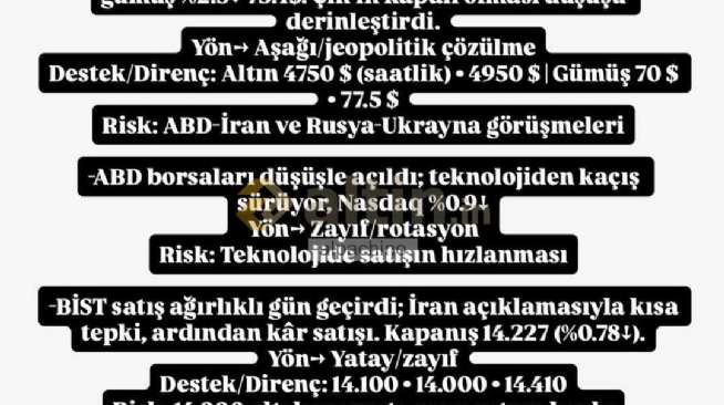 Gram Altın için alpachino yorumu ()Hocam piyasa net mesajları almaz yada doğrudan almaz . Piyasa profesyonelleri bu diplomatik dili okur, satır aralarını kendi süzgecinden geçirir ve fiyatlamayı ona göre yapar. piyasa anlasma var diye okumadı- savas bitiyor algısı oldu o sebeple satıs geldi