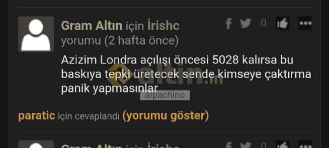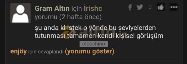 Gram Altın için alpachino yorumu ()İrishc bu şahsın gerçek hesabı @enjöy