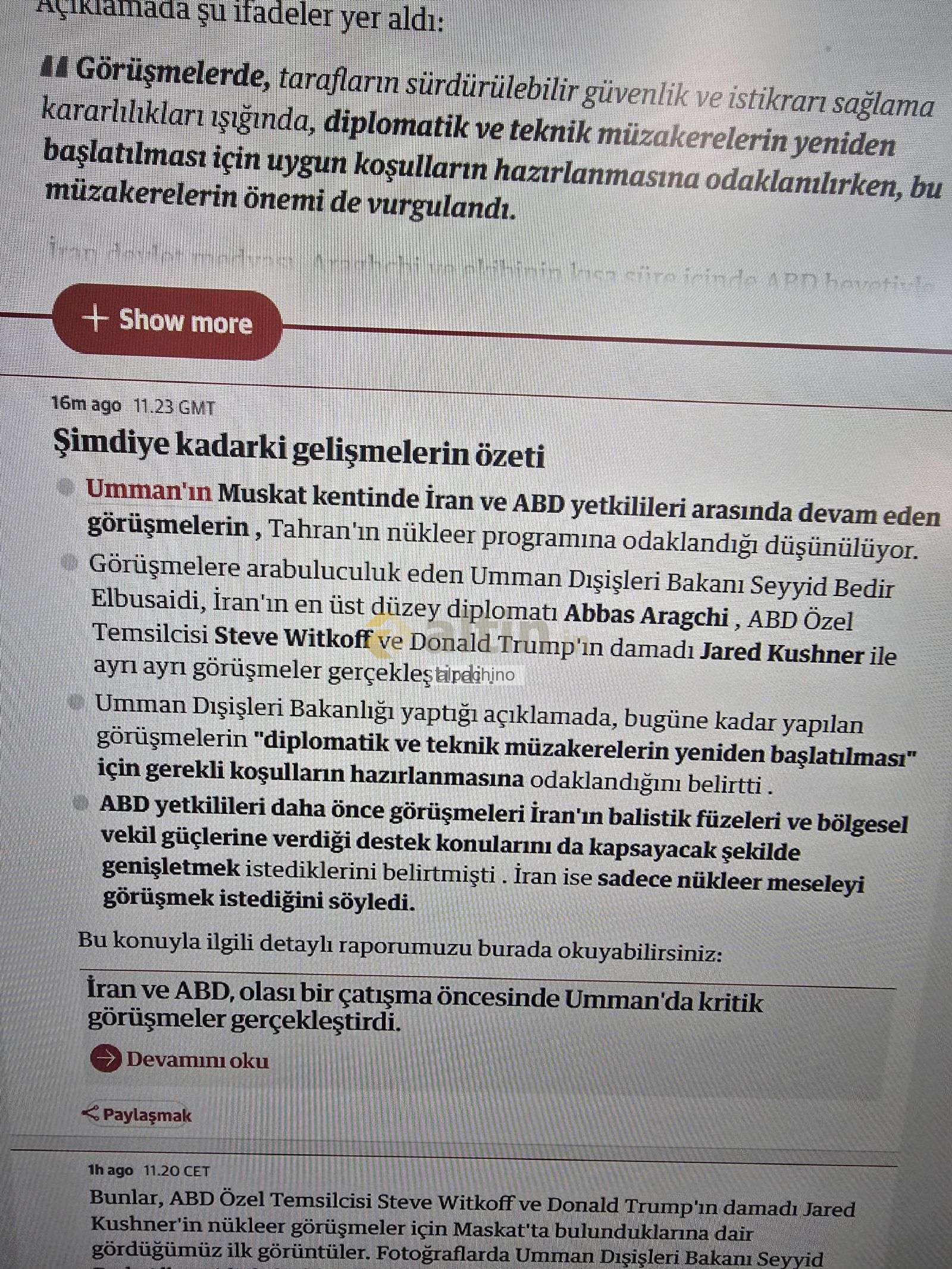 1 saat önce paylasmıstım tekrar paylasayım herhangi bir sonuc yok görüşmeler farklı tarihlerde daha samimi yapılacak