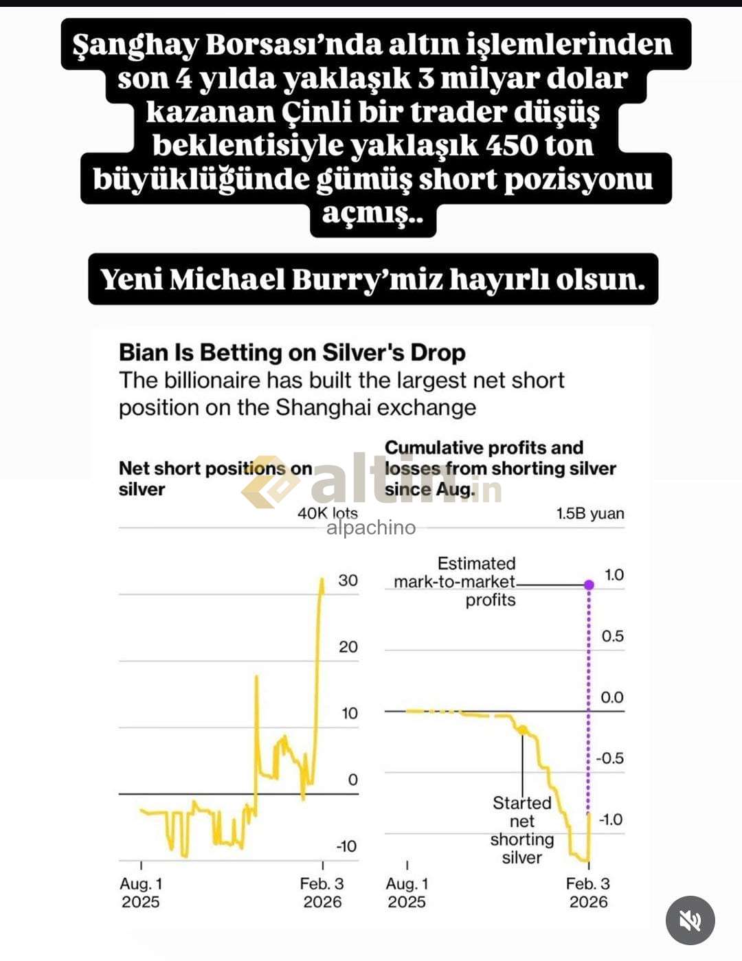 Pozsyon 3 şubatta shangaide açılmış ve 450 ton gümüş ücreti yuann olarak yatırılmış . düşecek demiş. o gece düşmüş.. pozisyonun ekran görüntüsü mevcut.. bu kadar parayı verip bunu kim bilebilirdi? Düşün.. Altın a bunu yapamazlar daha buyuk hacimli