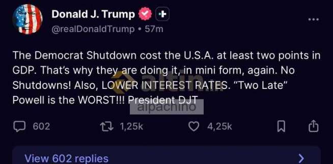 Sosyal medya platformu Scial Trth'tan paylaşım yapan Trmp, Dmkratları hkümeti yeni bir kapatma kararı almakla sçladı. Trmp paylaşımında “Dmkratlar'ın kapatma kararı usa'nin GSYH'sini en az 2 puan düşürdü. Bu yüzden şimdi de mini bir kapatma kararı alıyorlar. Kapatma olmasın! Faizleri hemen düşürün. Powll en kötüsü! ” dedi.