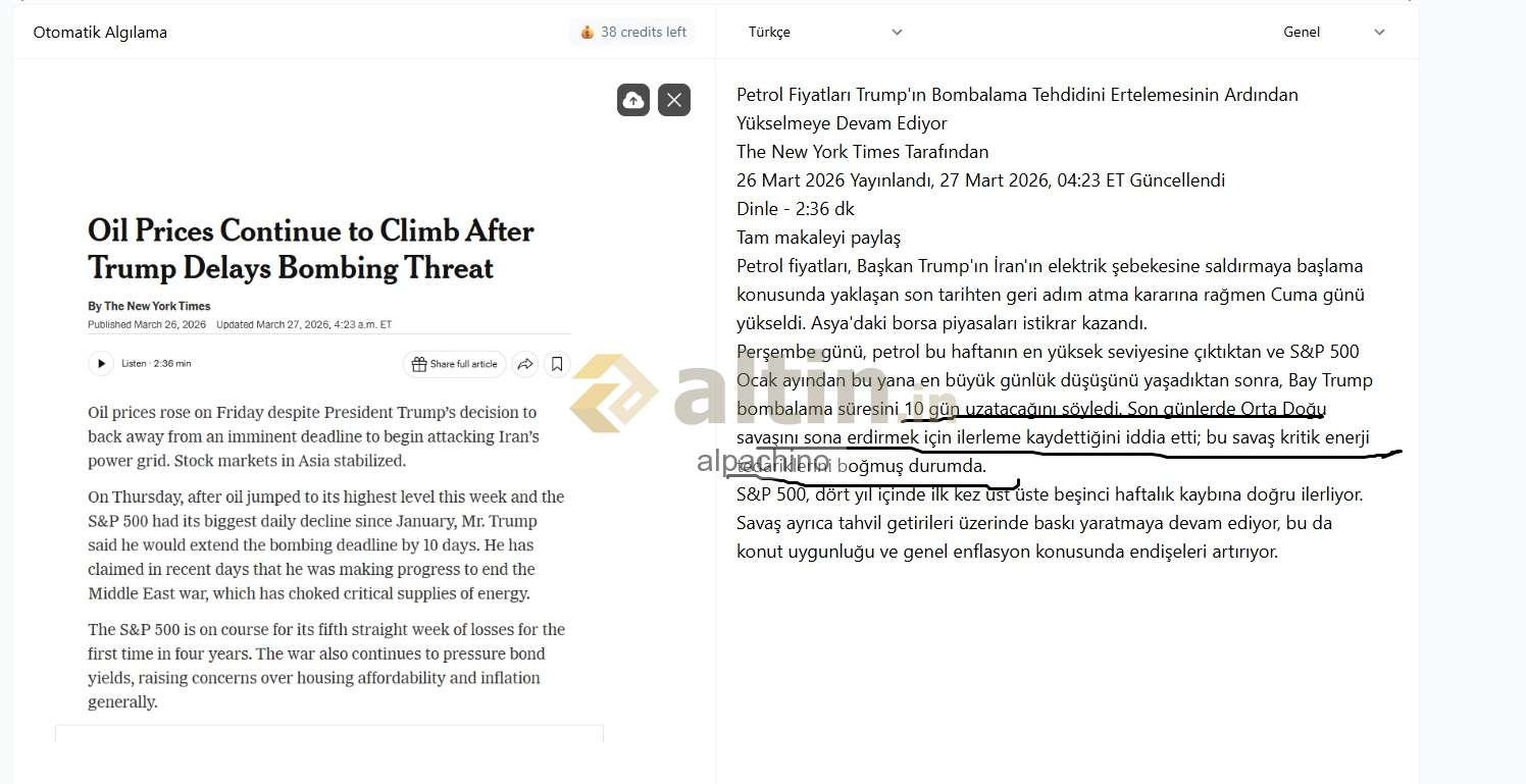 Diyorki:Trmp'ın "şimdilik bmblamıyorum" demesi pyasaları skinleştirmeye yetmemiş.Aksine daha cok boğmus. Yatırımcılar 10 gün sonra ne olacağını bilmedikleri için ptrol almaya ve ris- kli varlıklardan (hisse snetlerinden) kaçmaya devam ediyor. Bu durum hem cüzdanımızı (enflasyon) olarak etkileyecek