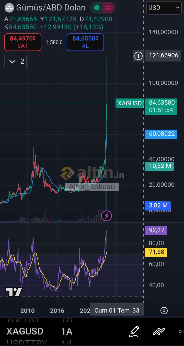 Gümüş için Altın_Kokusu yorumu ()Tamam 70-75 aralığı gelebilir dedim bekliyordum ama belki yavaş belki şok dedik de insan gözlerine inanamıyor :)