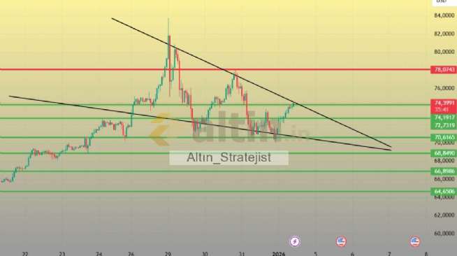 72,70 – 72,30 bandı: İlk önemli destek. Hem yatay destek hem de son yükselişin tutunma alanı olarak teknik açıdan önemli. Bu seviyenin korunması hâlinde geri çekilmeler sağlıklı bir düzeltme olarak değerlendirilebilir.