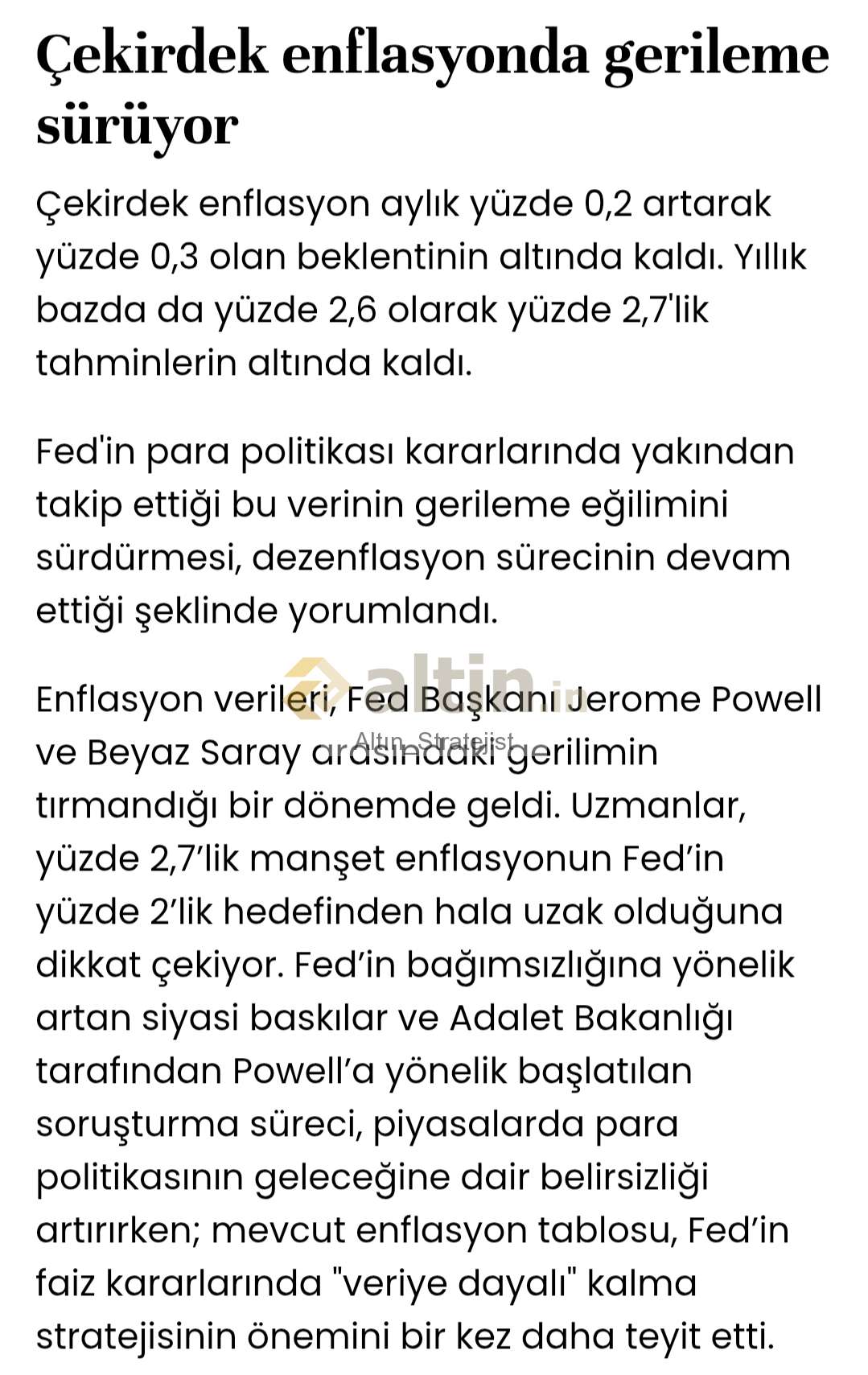 Gümüş için Altın_Stratejist yorumu ()Çekirdek enflasyonda gerileme sürüyor