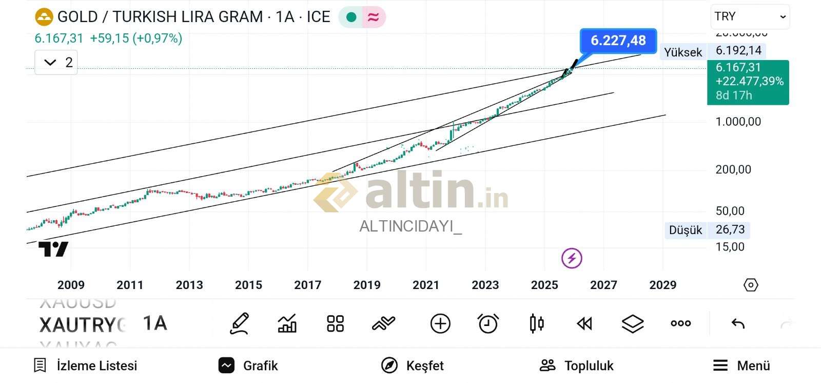 Gram Altın için ALTINCIDAYI_ yorumu ()Tl grafikleri pek önemsemem ama kritik seviye 6227-6230tl