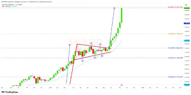Ons Altın Parabolic olarak yani çok kısa düzeltmelerle alamayanlara adeta fırsat tanımadan yükselişini sıradaki fiboya kadar da götürdü.