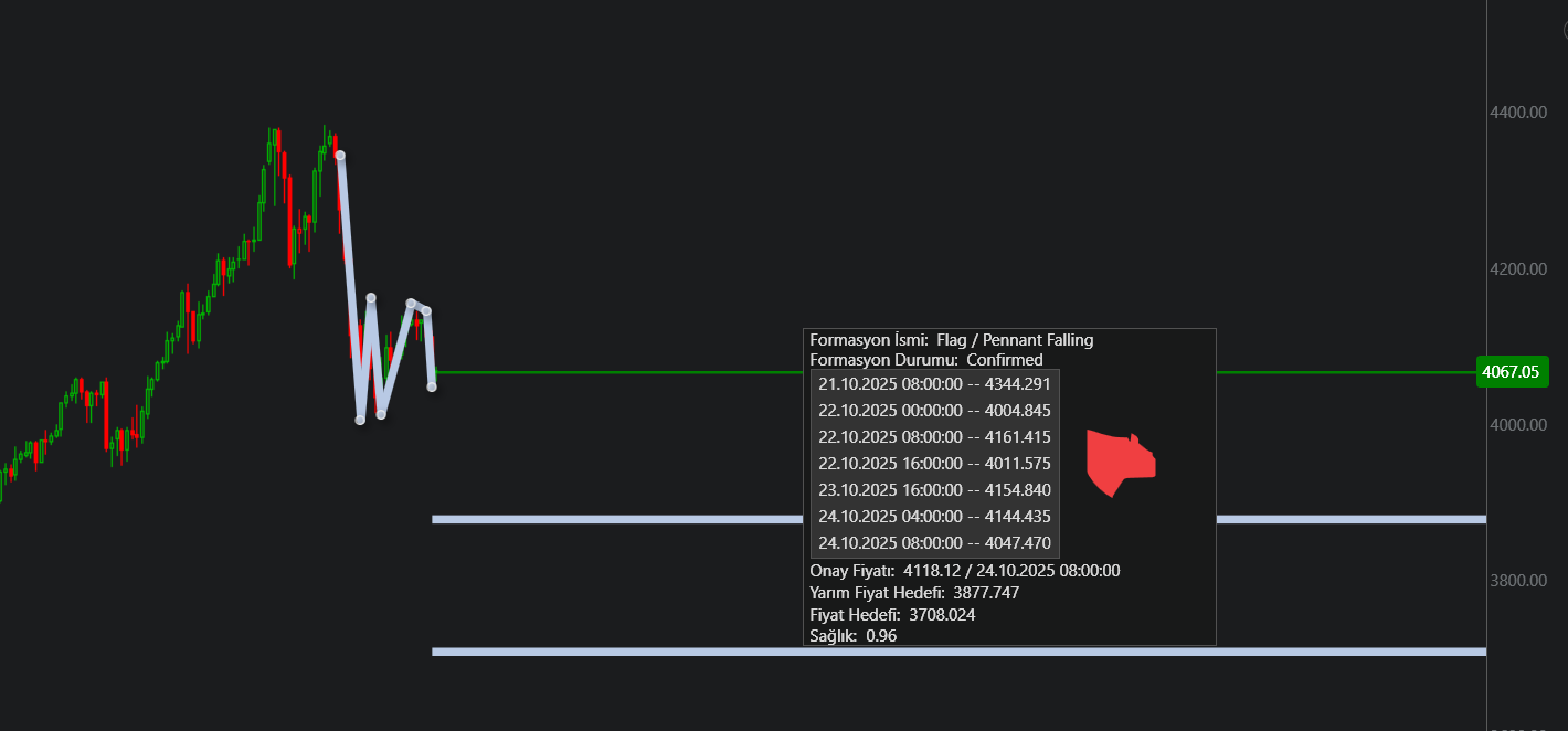 4,045- usd burası aynı zamanda kısa vade güncel ters flama alt band desteği.