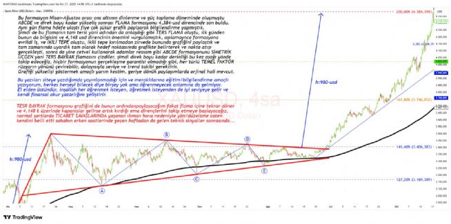4,148- usd kırılamdı ve E dalgası sonlandı, E sonlanınca ne olacağını biliyoruz fakat öncelikle 4,060- usd bugünün önemli seviyesi ve kalıcı olarak kırılıp kırılamayacağı, grafiğimiz hazır fakat şimdilik paylaşmayacağım.