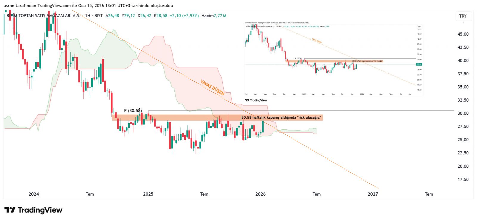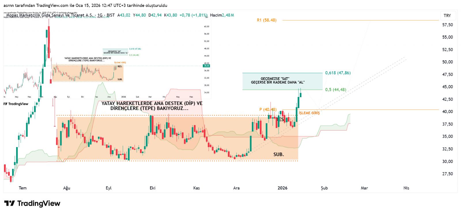 Bist (Borsa İstanbul) için ASRN yorumu ()mopas da grafikte gösterdiğim aralığı iğneledi orasını geçerse ne yapacağınızı biliyorsunuz