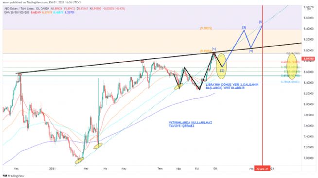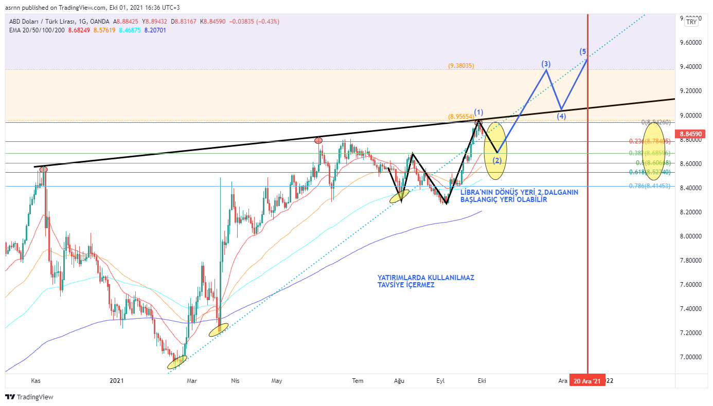 Yukardan geçen siyah çizgi direnç hattı orayı denedi geçemedi siyah W bir formasyon(libra) sağ bacağından bir dönüş yeri olacak o seviyede sarı ile isaretledim aynı zamanda ema'ların destek yeri sağdaki fib seviyelerinden birinden dönerse tahmini Elliot sayımı ile 2. yukselis dalgası başlamış diyeceğiz bunun için teyitler arıyoruz
