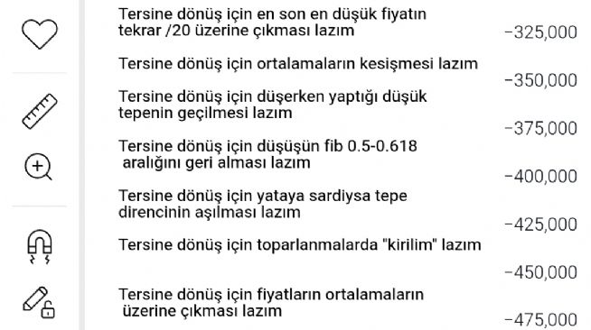 Bulutun renginin mordan turuncuya dönmesi düşüş trendi içerisinde tepki alışı olduğunu