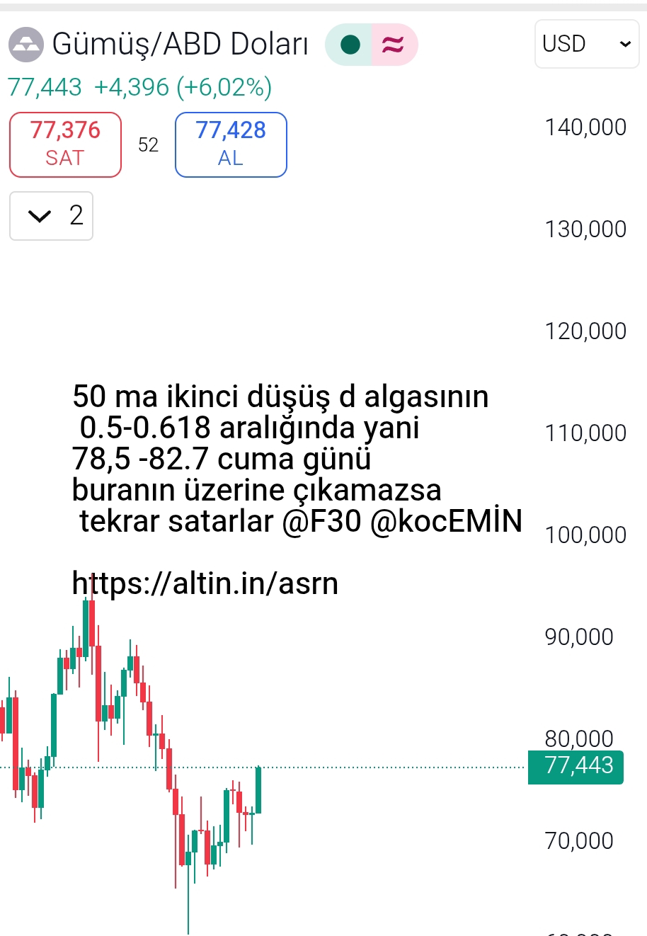Gümüş için ASRN yorumu ()55 ema değil 50ma o da 79.810 da bugun