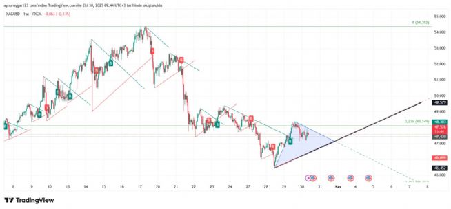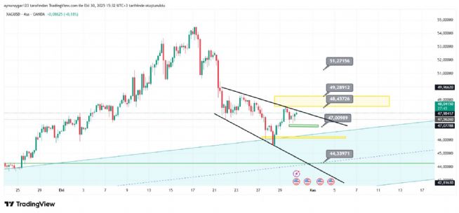 48.43 kırı orada oyalandıktan sonra 49.40 test edilebilir ..49.40 aşıldığında artık yükselecek diyebiliriz .. şu an için erken bana göre