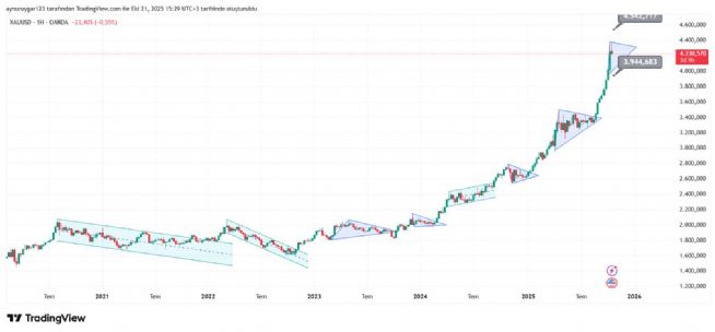 şu an erken amma ileride 4500 ile 3900 arasinda oyalanma olursa yukarı gitmek için güç toplamak olabilir .. ytd çok güçlü boga trendi kolay sona ermez