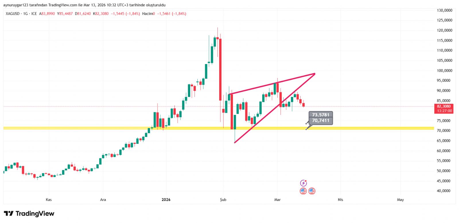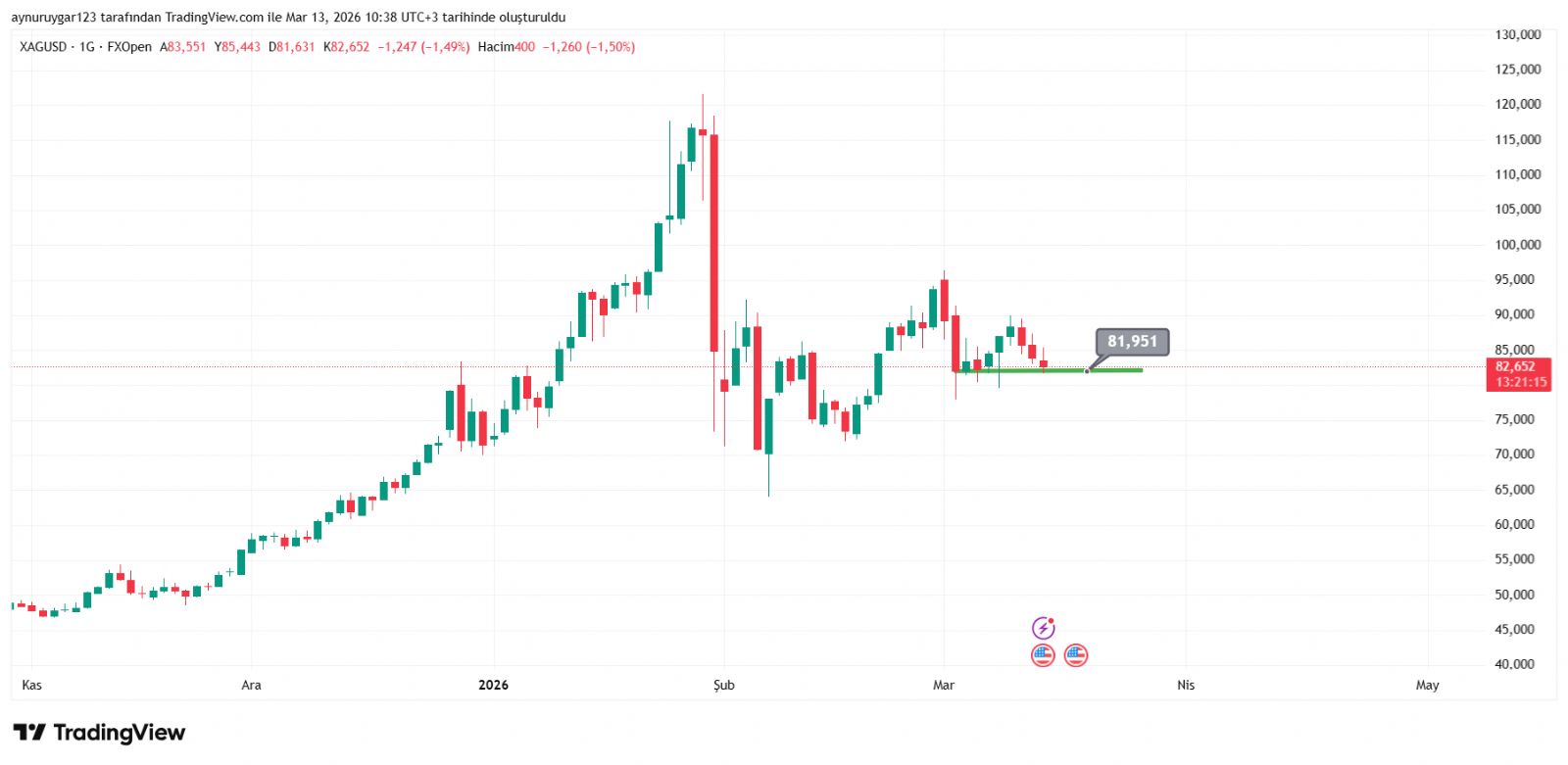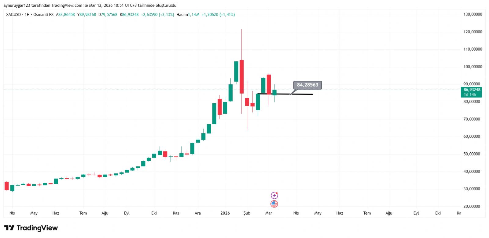 Gümüş için Aynur1 yorumu ()Konu: 13 Mart 2026 Aynur1 Gümüş grafikli yorumu
