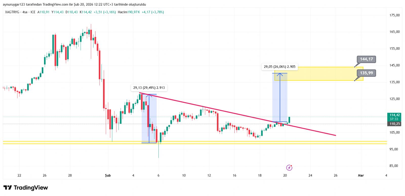 Gümüş için Aynur1 yorumu ()ay sonu 85 üstü olması gerekiyor aylık kapanış ytd