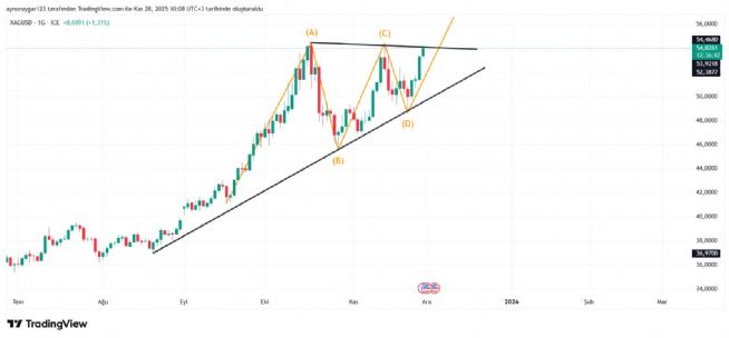 altında ve gümüşte xabcde formasyon daha var ..54.45a dersek bir yeni tepe gelmesi an meselesi gibi duruyor ...
