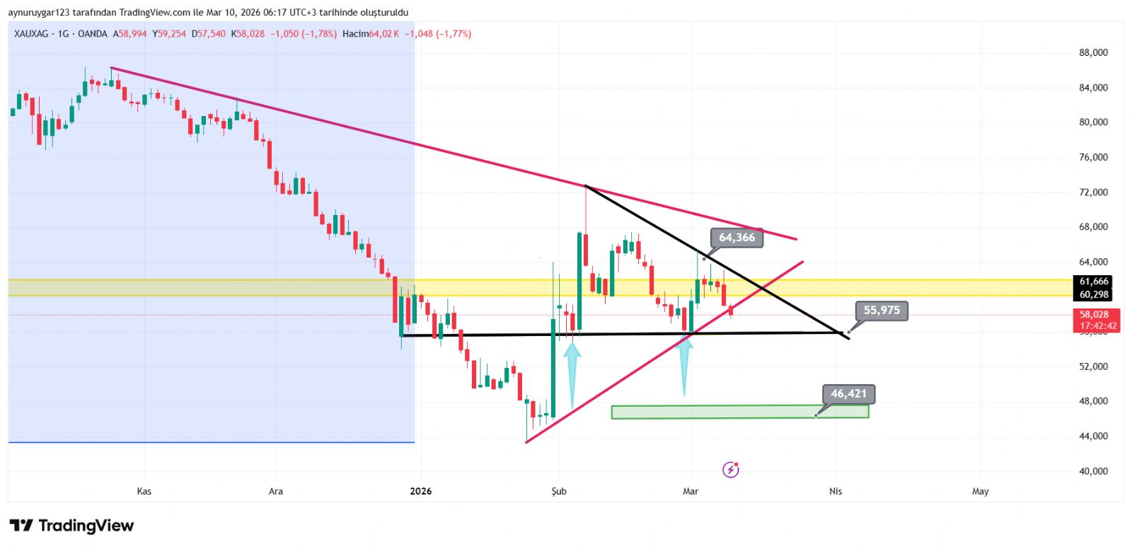 Gümüş için Aynur1 yorumu ()Konu: 10 Mart 2026 Aynur1 Gümüş grafikli yorumu