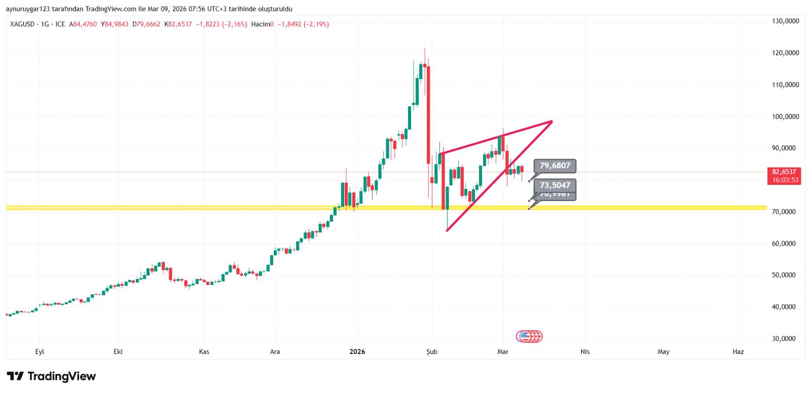 Gümüş için Aynur1 yorumu ()Konu: 9 Mart 2026 Aynur1 Gümüş grafikli yorumu
