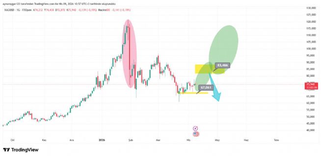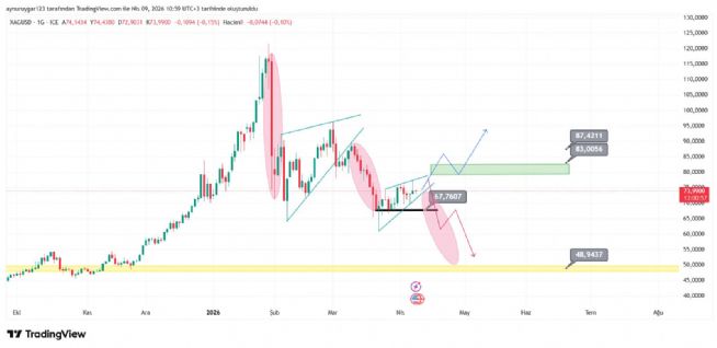 bu hafta 82 hata 85 e kadar yükselirse sonra ay kapanışa yakın 75 e geri dönse ,