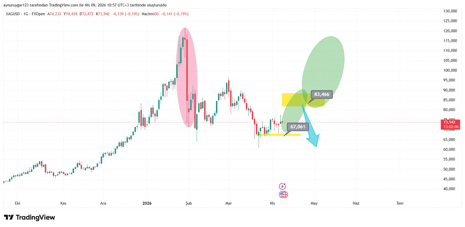 7. ons gümüş 2026 yıl icinde 84 altina inmemeli . yoksa 6 aylık yıllık mum fitile dönüşebilir.