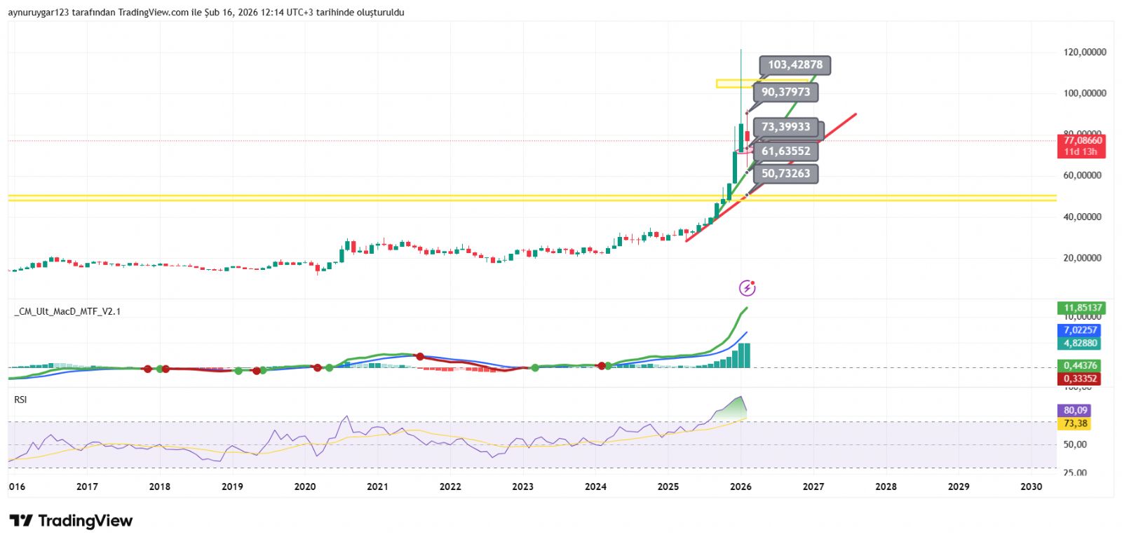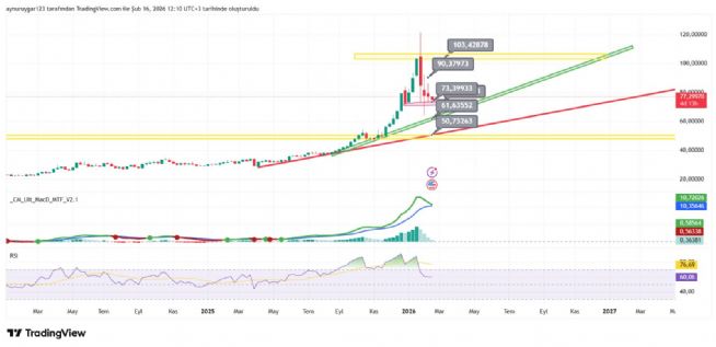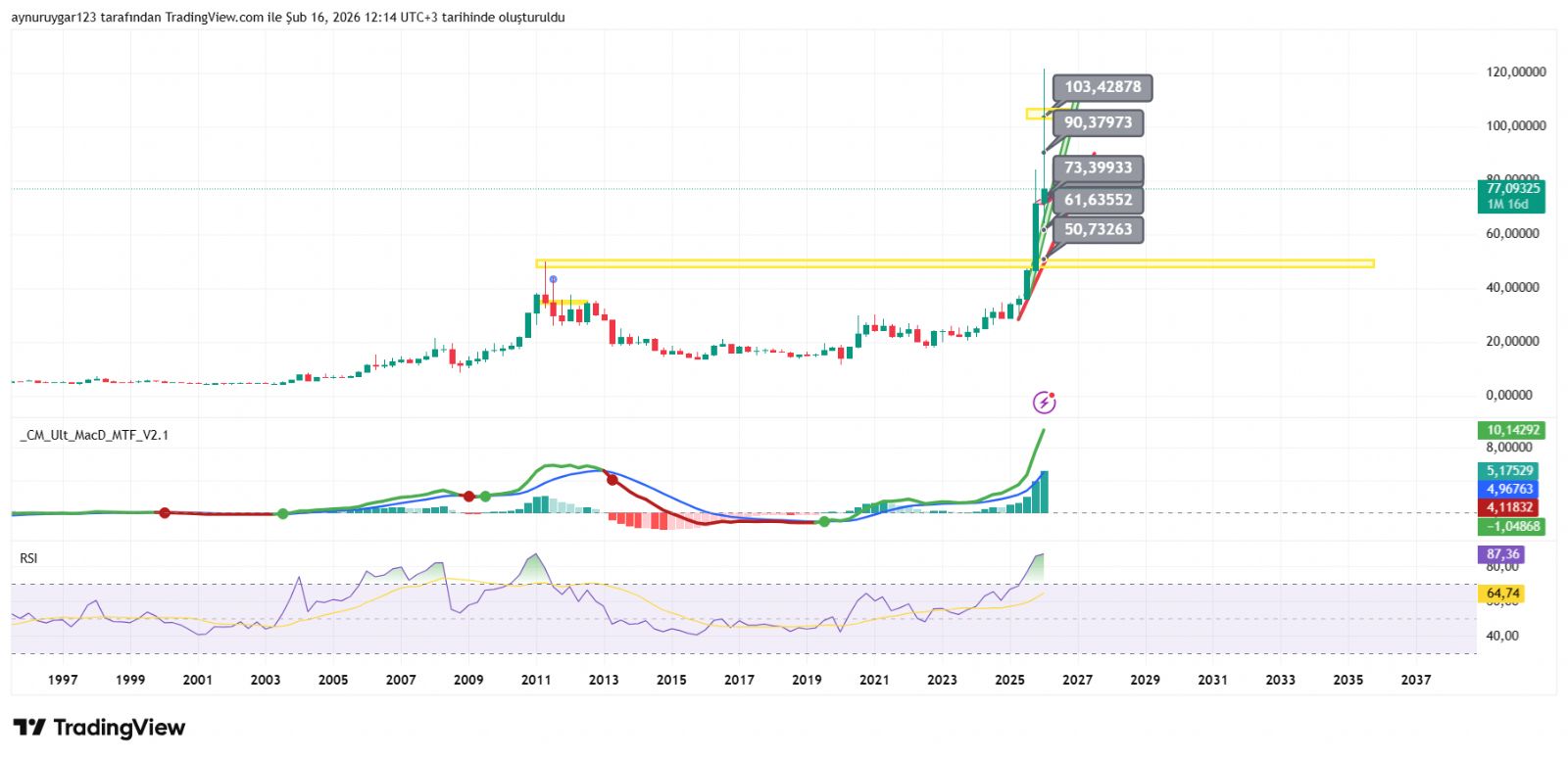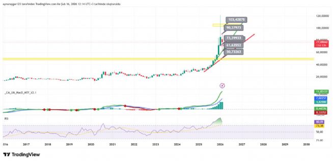 7. ons gümüş 2026 yıl icinde 84 altina inmemeli . yoksa 6 aylık yıllık mum fitile dönüşebilir.