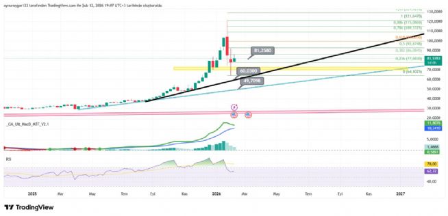 99 fibo 0.618 e denk geliyor ...bir kaç hafta sonra test edebilir ..ytd burada çok iyi bakılmalı