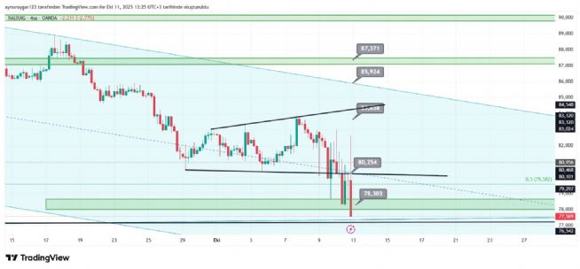 78.60 78.30 desteğinden uzaklaşmalı . aylık destek . kırarsa aylıkta da sat a dönecek .