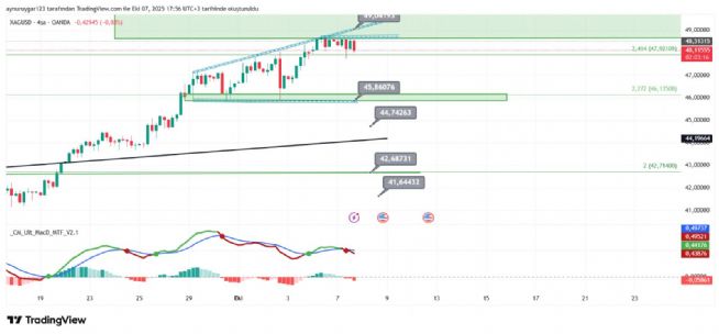 gümüşte az satış yiyip desteklerden yeni alıcı ile güç toplayıp 50 direncini kırmalı