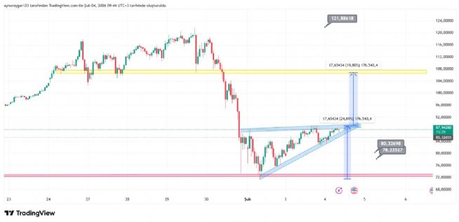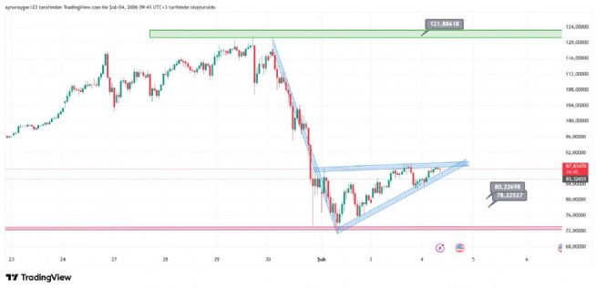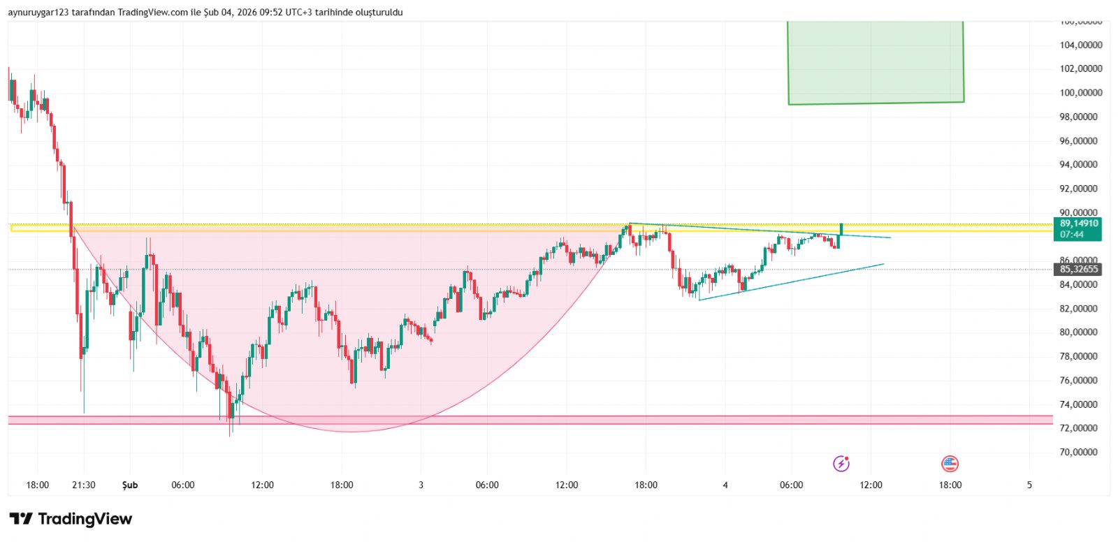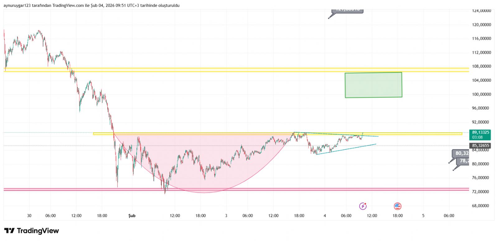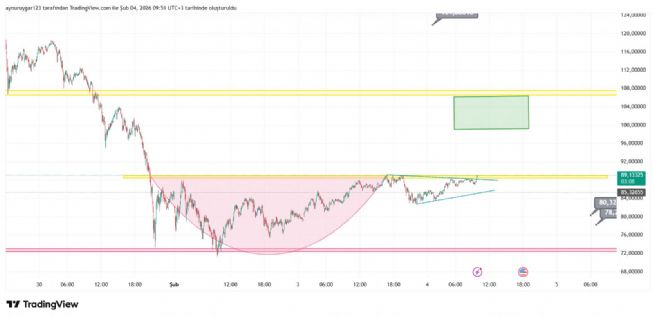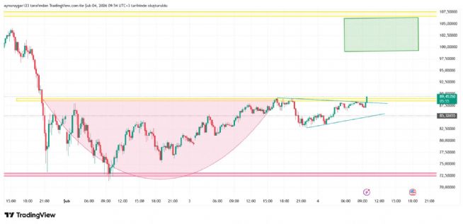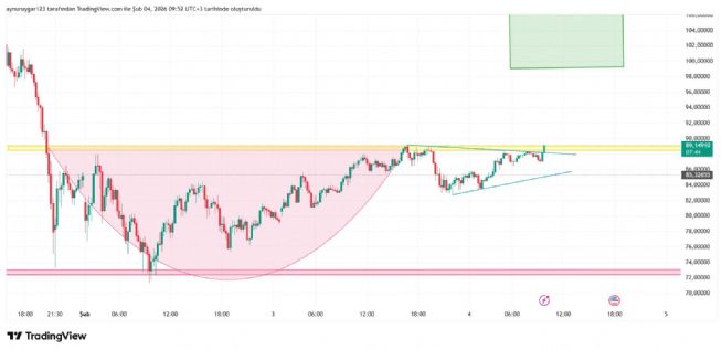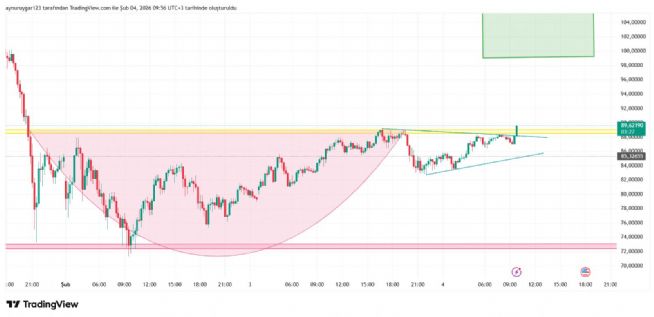 grafıkte yatay destk dırençler önemlidir ..o sarı 89 e denk gelen yatay direnç kırıldiğında hızlı bir haraket gelebilir ..ytd