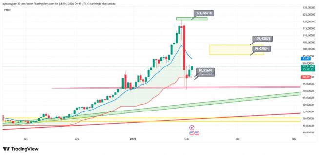 7. ons gümüş 2026 yıl icinde 84 altina inmemeli . yoksa 6 aylık yıllık mum fitile dönüşebilir.