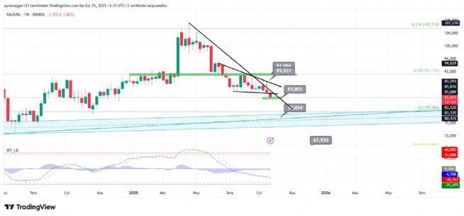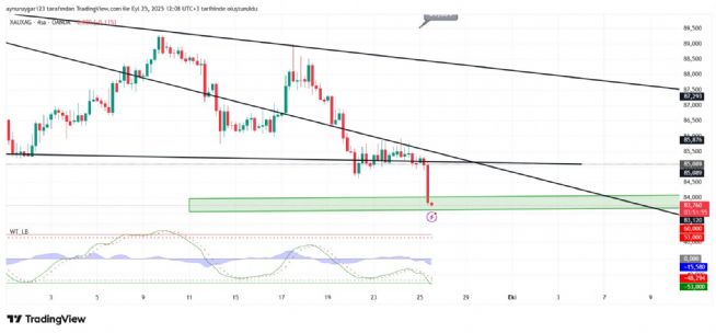 yeşil alam hacımlı kırılısra aşaği daha alt destekleri konuşuruz .,82.80 son destek en güçlü destek bakalım yarın kapanışa.