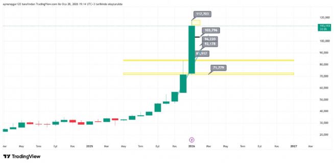 71 den başlayan son mum ..108 e geldi neredıyse ..şubat ayı ne olur bilmem ..47 dolar in ne kadarı nı geri verir. şubatta bakarız