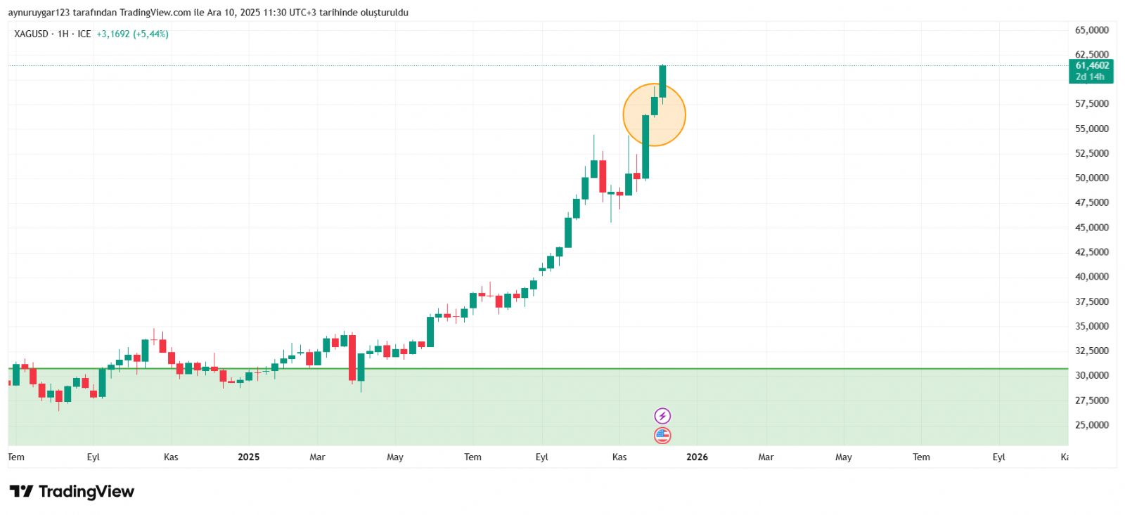 Gümüş için Aynur1 yorumu ()21 gün sonra aylık kapanış 67 altı mı üstü mü bana hatırlatın .. kolay elsin hayırlı işler.