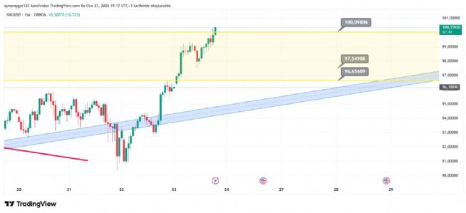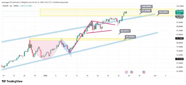 gümüş 96.66 dan başlayan 100 e kadar tüm direnç sarı alanımı aştı ...