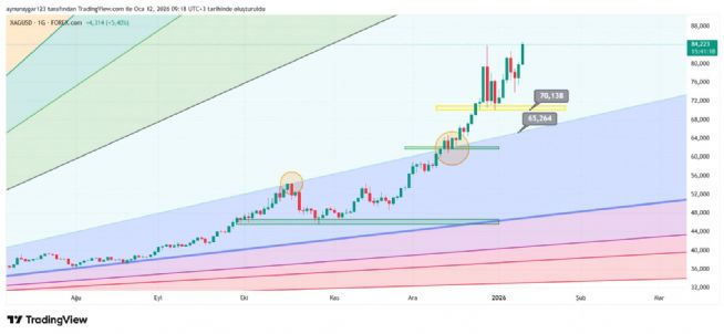 7. ons gümüş 2026 yıl icinde 84 altina inmemeli . yoksa 6 aylık yıllık mum fitile dönüşebilir.