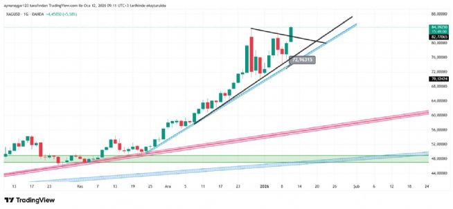 7. ons gümüş 2026 yıl icinde 84 altina inmemeli . yoksa 6 aylık yıllık mum fitile dönüşebilir.