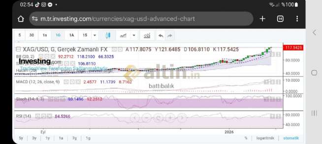 Gümüş için battıbalık yorumu ()115 i destek yaptı. Ilk direnç 117 hadi bakalım hayırlısı. Asyadan alım gelir diye tahmin ediyorum.