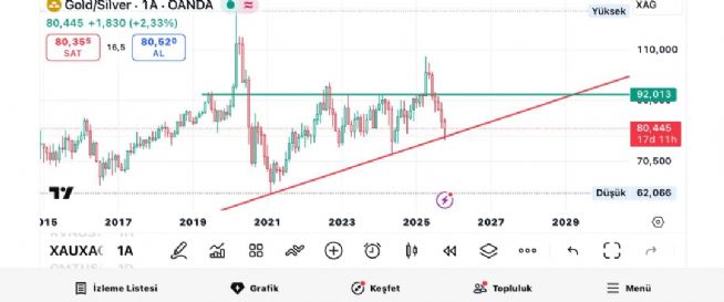 Rasyo 78 Altın da 1 gün bile kalamıyor. Rasyo zaten bu rakamın altında kalabilse gümüşte yukarı yönlü hareket daha ivme kazanır