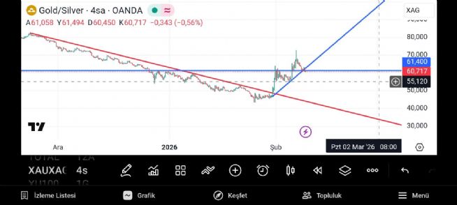 Gümüş Altın a göre rasyo konusunda avantajlı pozisyonunu koruyor 61 bölgesi aşşağı kırılma gümüşte yukarı yönlü hareketleri dertleş tire çektirdiği