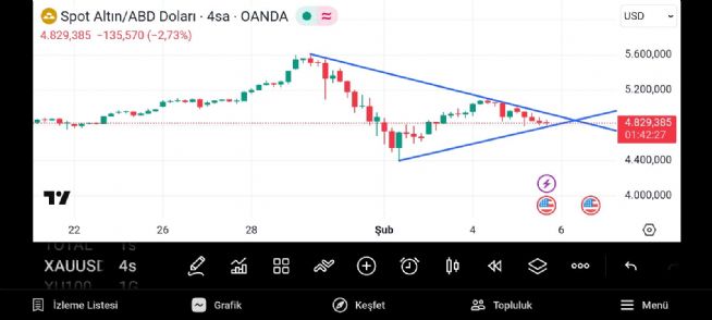 4 saatlik grafikte altında son durum bu genelde bu tür durumlarda üçgeni yukarı kırar