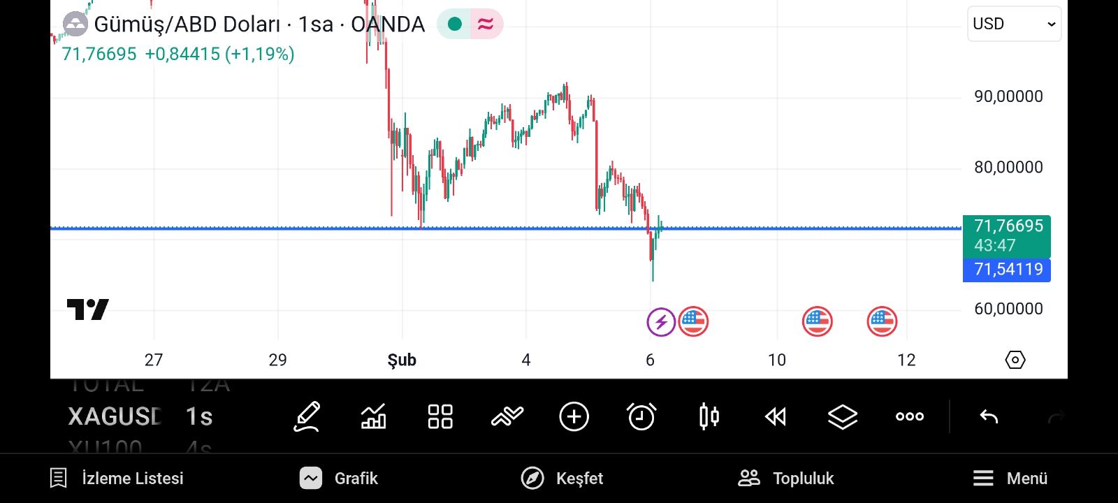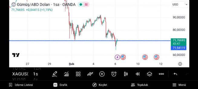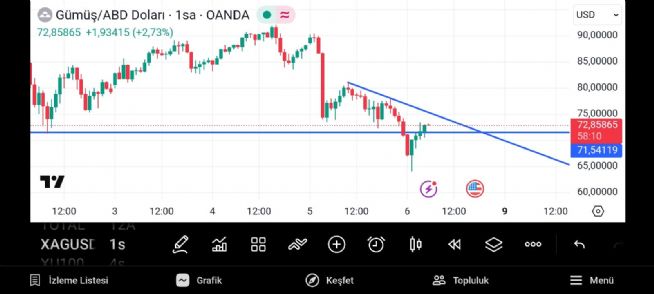 Gümüş için Boyno2727 yorumu ()71.50 bin üzerine atmamız lazım üzerinde saatlik kapanışlar yapmamız lazım