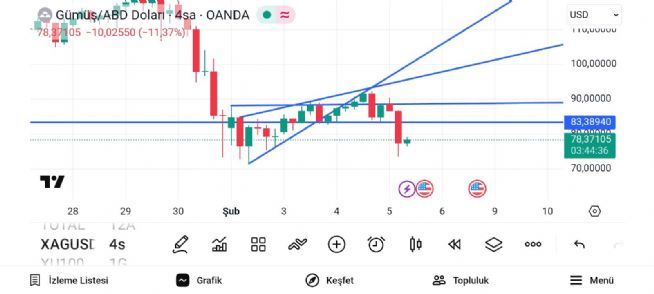 Şu an bana göre altında gümüşe geçilir mi geçirebilir ama gümüşte 1.70 bölgesini test etmesi beklenebilir Çünkü rasyonun daha yukarı gitme ihtimali var Gümüş 70 bölgesini test ederse ikili dip yapmış olur bu sefer Yükseliş daha sağlıklı olur