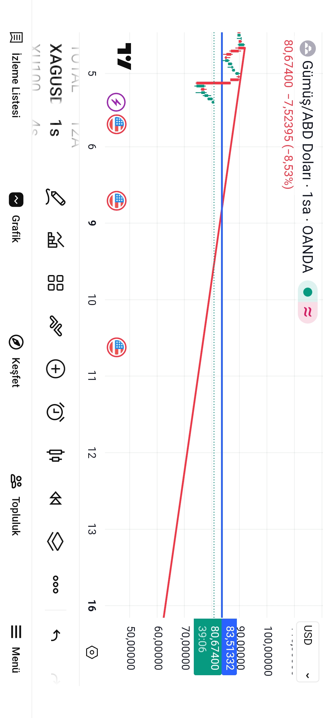 Saatlik grafiklere bak bak haftalık grafiği unutuyoruz şimdi haftalık grafiğe baktım orası da olumsuz arkadaşlar 85.50 üzeri bu hafta kapanışı Olmazsa cuma günü gece sıkıntılar büyüyebilir